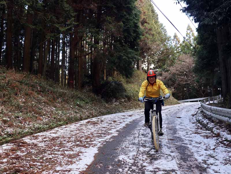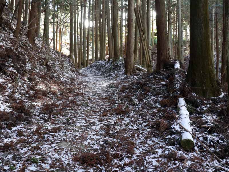 元旦に雪が降ったので、ここ良助法親王(りょうすけほっしんのう)(1268〜1318)墓 の上りでは・・・・